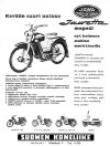 The Jawetta was introduced in 1958 but at that stage was called just the “Jawa Moped” and was designated model 551. This model was actually a Jawa product made at the Jawa factory in Prague, making it the only true Jawa moped. It was produced until 1962. As some of the adverts show, the Jawetta was sold along side the Pionyr. The Pionyr, which didn’t have pedals, was marketed as a lightweight motorcycle. The Jawetta, with pedals, was a moped being “more suitable for women and juveniles” - their words, not mine. Although both had similar 49.8cc engines, the Pionyr had 2.2HP with a 3 speed gear box against the Jawetta’s 1.5HP & 2 speed box.. |